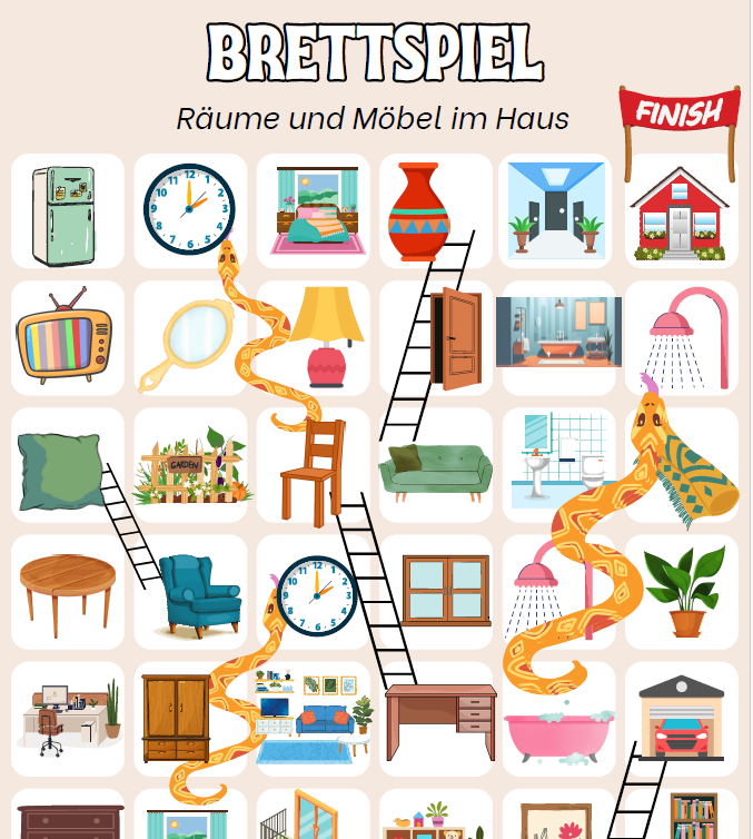 Plik pdf zawiera gry i karty pracy związane z tematyką mebli i pomieszczeń w domu. W skład zestawu wchodzą: