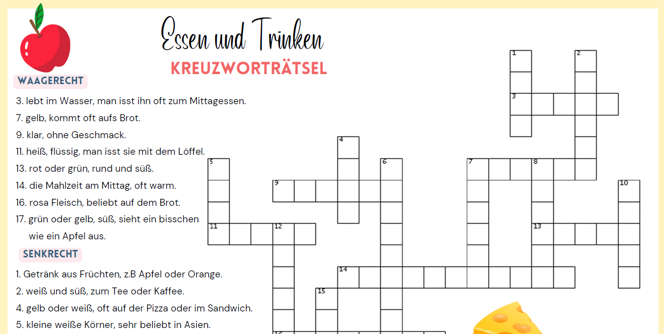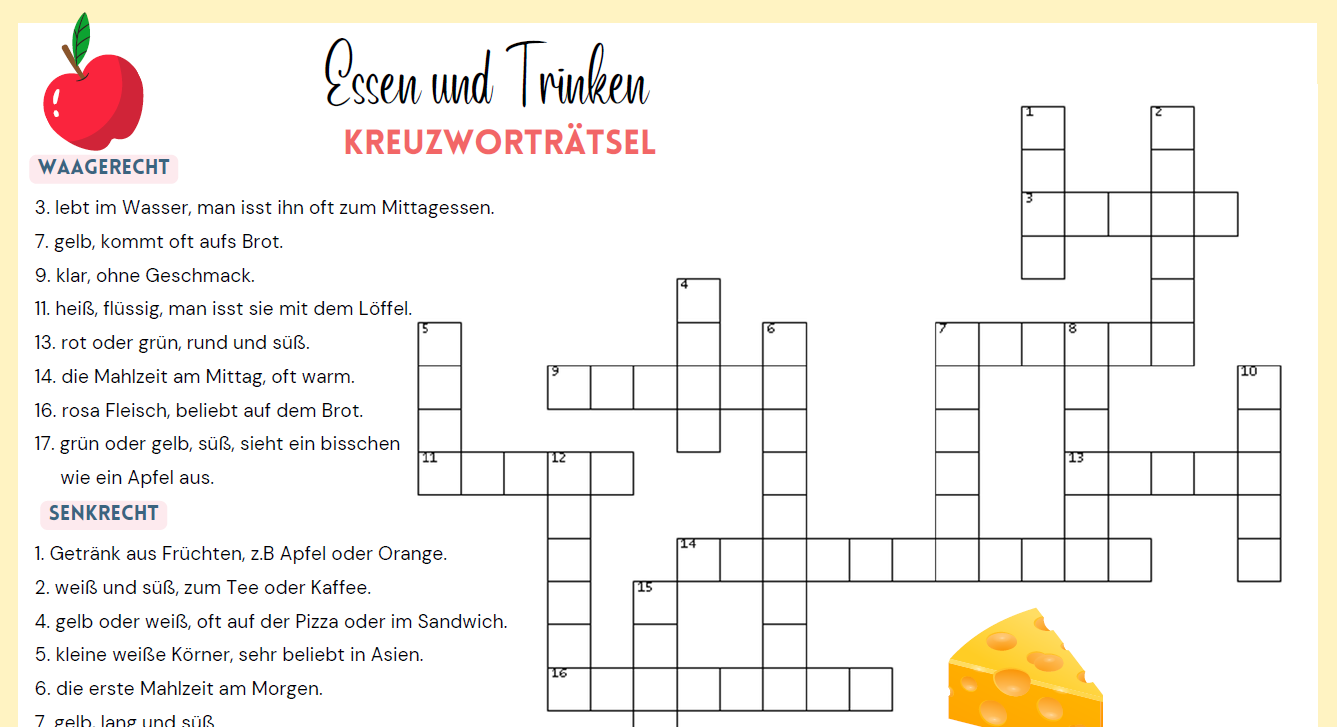 • krzyżówka po polsku dla słabszych grup i po niemiecku plus klucz odpowiedzi
